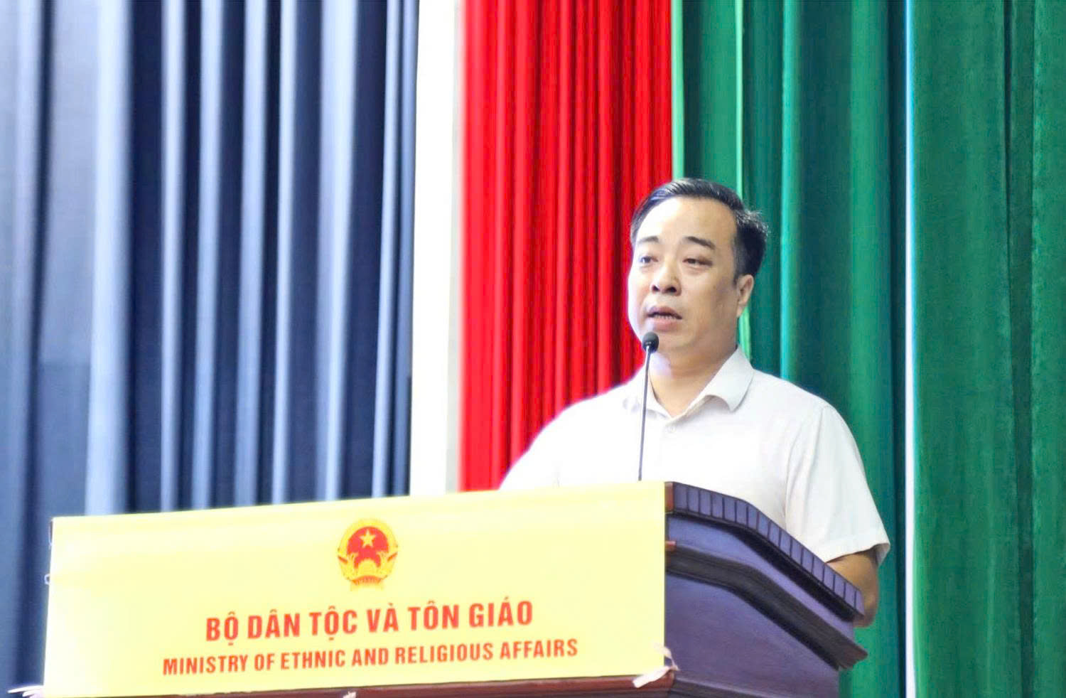 Ông Bùi Quốc Thắng, Quyền Giám đốc Trung tâm Chuyển đổi số, Bộ Dân tộc và Tôn giáo phát biểu chia sẻ tại khóa Bồi dưỡng